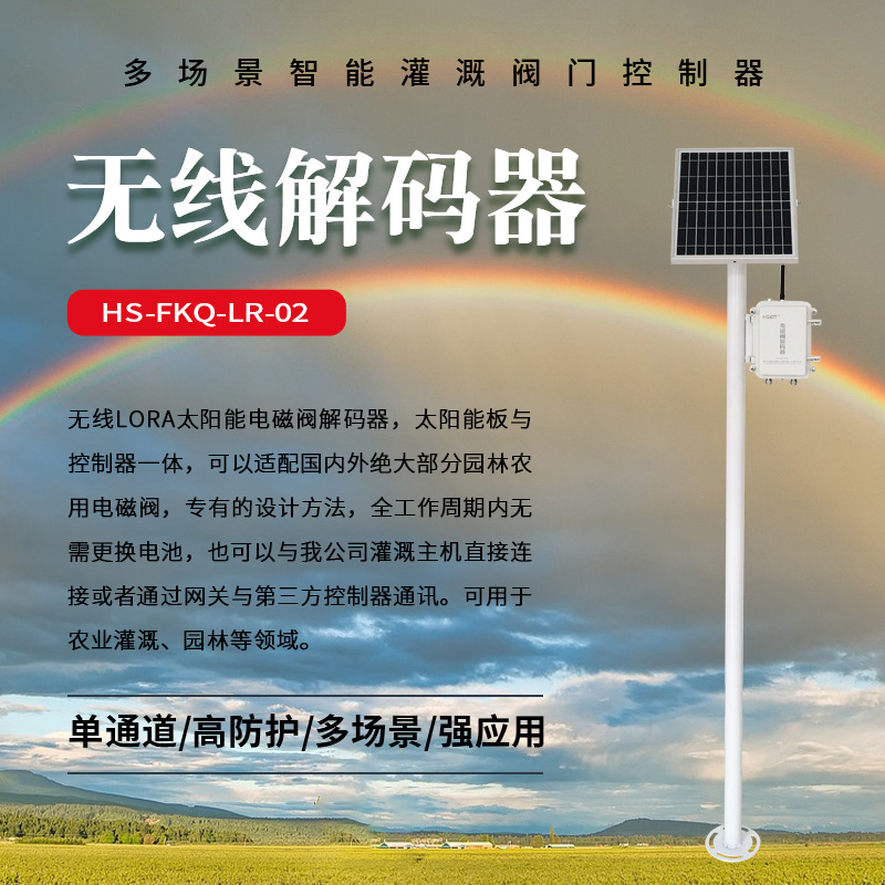 產(chǎn)品簡介 : 無線LORA太陽能電磁閥解碼器,太陽能板與控制器一體,可以適配國內(nèi)外絕大部分園林農(nóng)用電磁閥,專有的設(shè)計(jì)方法,全工作周期內(nèi)無需更換電池,也可以與我公司灌溉主機(jī)直接連接或者通過網(wǎng)關(guān)與第三方控制器通訊。可用于農(nóng)業(yè)灌溉、園林等領(lǐng)域。