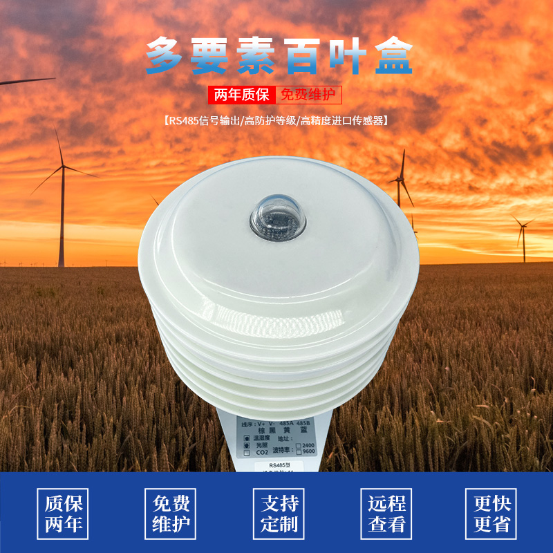 產(chǎn)品簡(jiǎn)介 : 該一體式百葉箱可廣泛適用于環(huán)境檢測(cè),集噪聲采集、CO2、溫濕度、大氣壓力、光照于一體,安裝在百葉盒內(nèi),設(shè)備采用標(biāo)準(zhǔn)MODBUS-RTU 通信協(xié)議,RS485信號(hào)輸出,通信距離最大可達(dá)2000米(實(shí)測(cè))。該變送器廣泛適用于需要測(cè)量環(huán)境溫濕度、噪聲、空氣質(zhì)量、大氣壓力光照等各種場(chǎng)合,安全可靠,外觀美觀,安裝方便,經(jīng)久耐用。